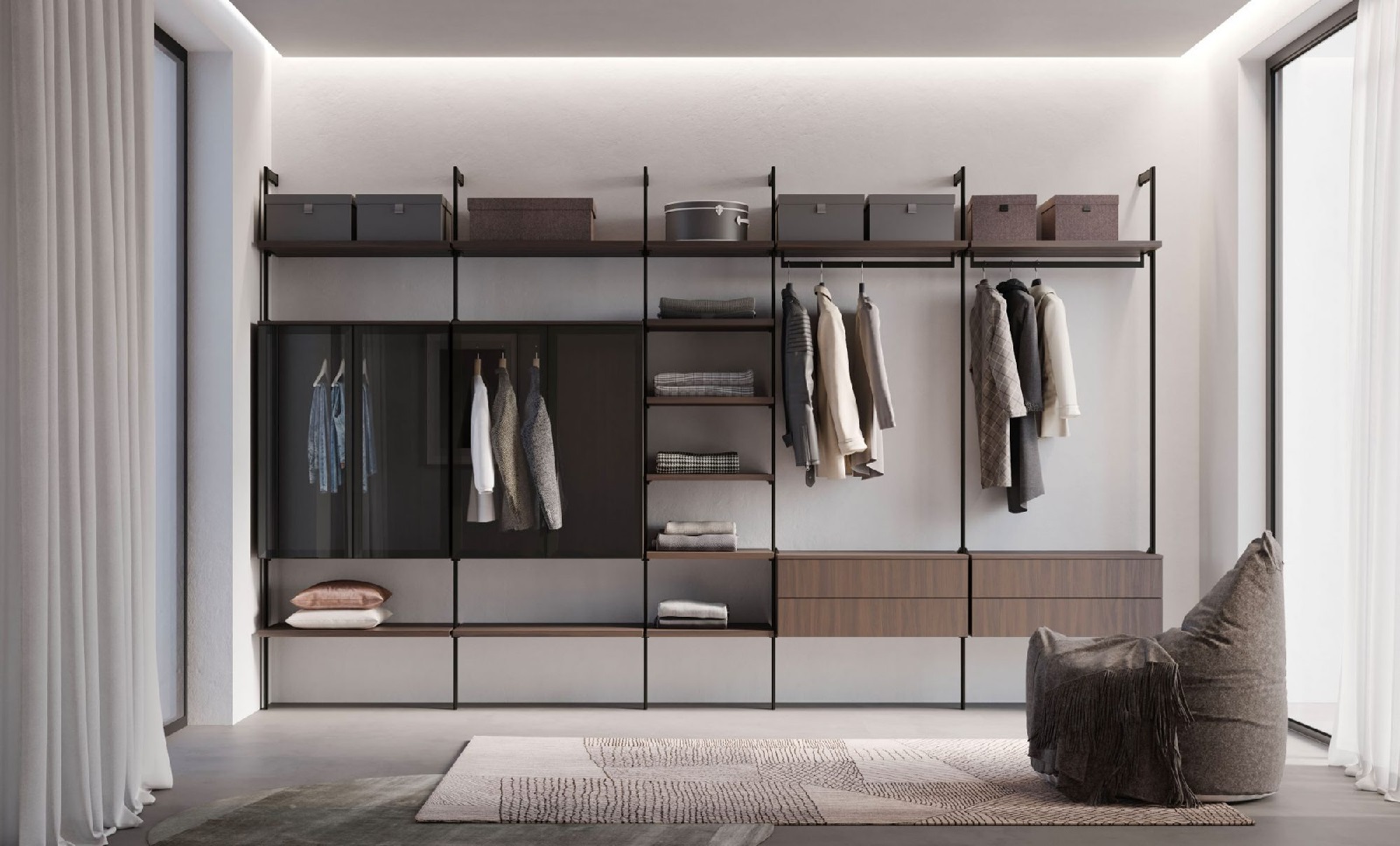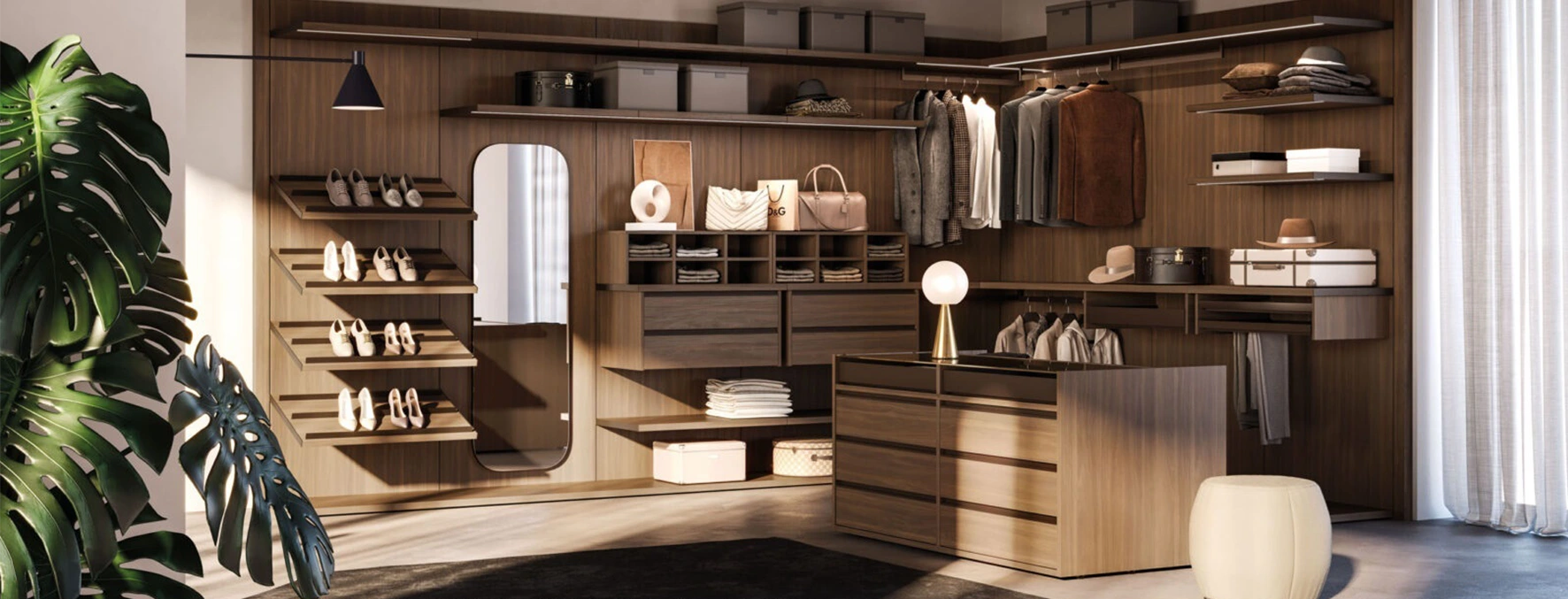 Poliar realizza cabine armadio di diverse tipologie: modulari a spalla, con montanti a soffitto o a parete, oppure cabine armadio pannellate, con la possibilità di essere chiuse a tutta altezza con delle ante scorrevoli su misura permettendo di ottenere risultati di grande effetto estetico e di ottimo design.